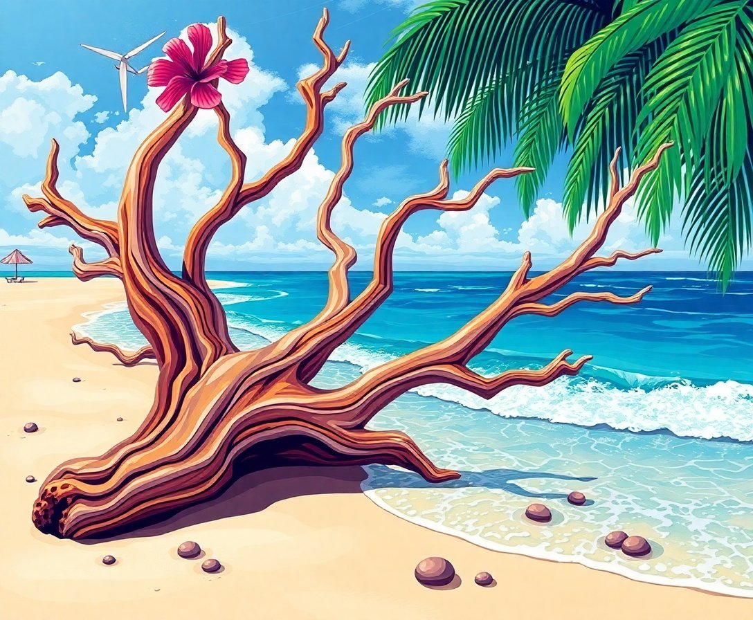 Ultimately, step back and admire your finished creation. The realistic twisted wood grain emerges beautifully. Your driftwood art now captures tropical serenity perfectly.