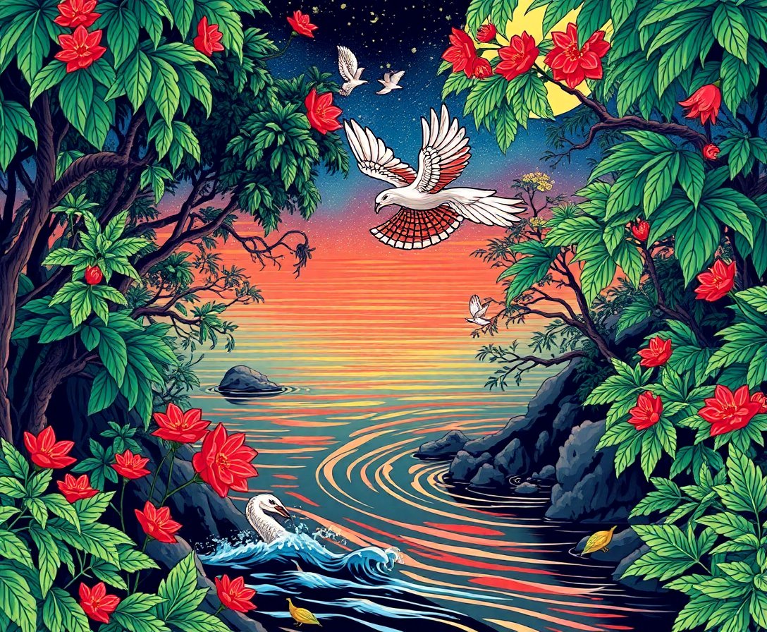 Transform your space with the mesmerizing Ukiyoe Jungle River Flight Paint By Numbers. This stunning kit captures the essence of traditional Japanese woodblock artistry. Furthermore, it brings exotic birds soaring through lush tropical landscapes directly to your home.