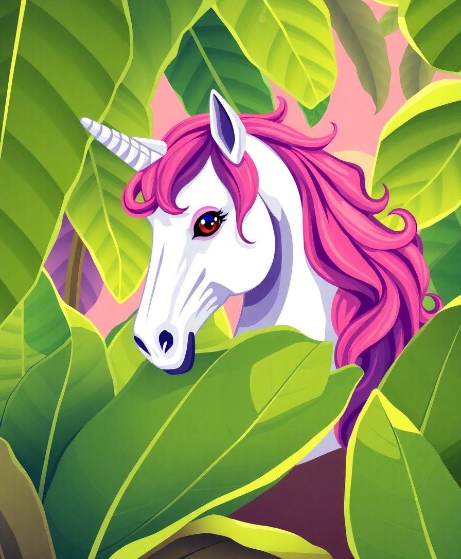 Unicorn Beneath Banana Leaves Paint By Numbers