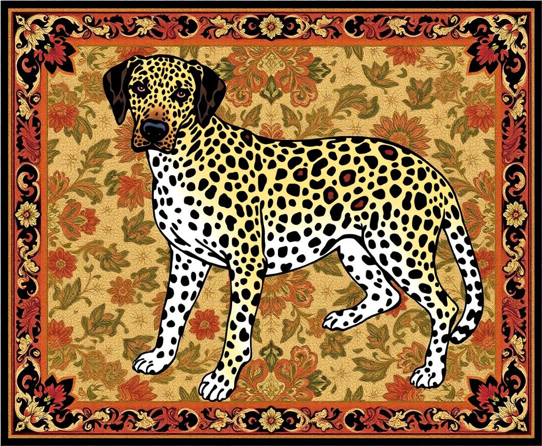 Ultimately, step back and admire your completed Victorian Hound Leopard Rug Paint By Numbers creation. Add final touches where needed and prepare for hanging using the included mounting hardware.