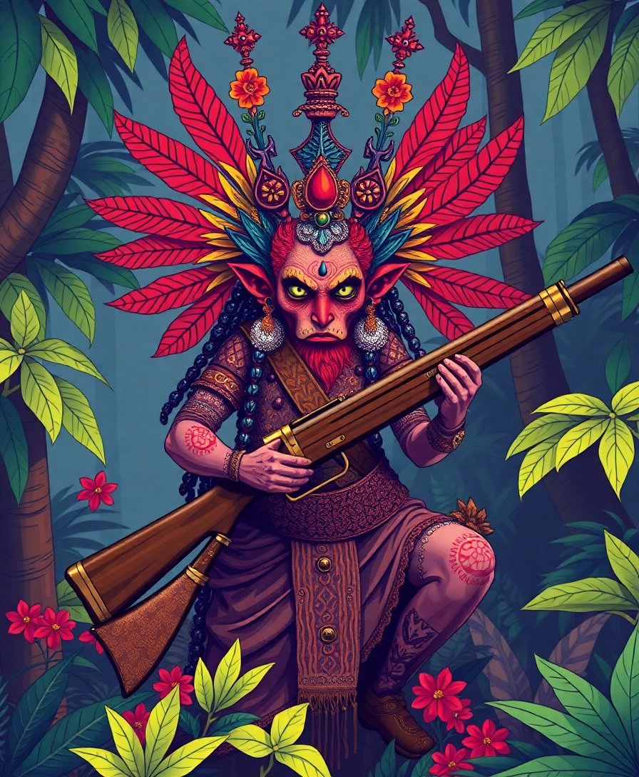 Transform your artistic journey with this captivating Victorian Rifle Jungle Deity Paint By Numbers masterpiece. This extraordinary design blends antique Victorian aesthetics with mystical tropical elements. Additionally, the intricate foliage patterns create a stunning vintage atmosphere.