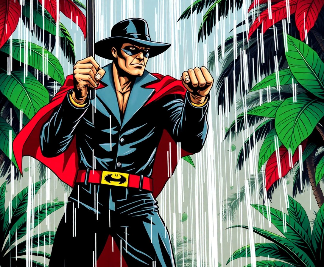 Transform your creative space with this captivating Vigilante In Tropical Downpour Paint By Numbers kit. This cinematic masterpiece captures the dramatic essence of a masked hero standing resilient against nature’s fury, combining comic book artistry with tropical atmosphere.