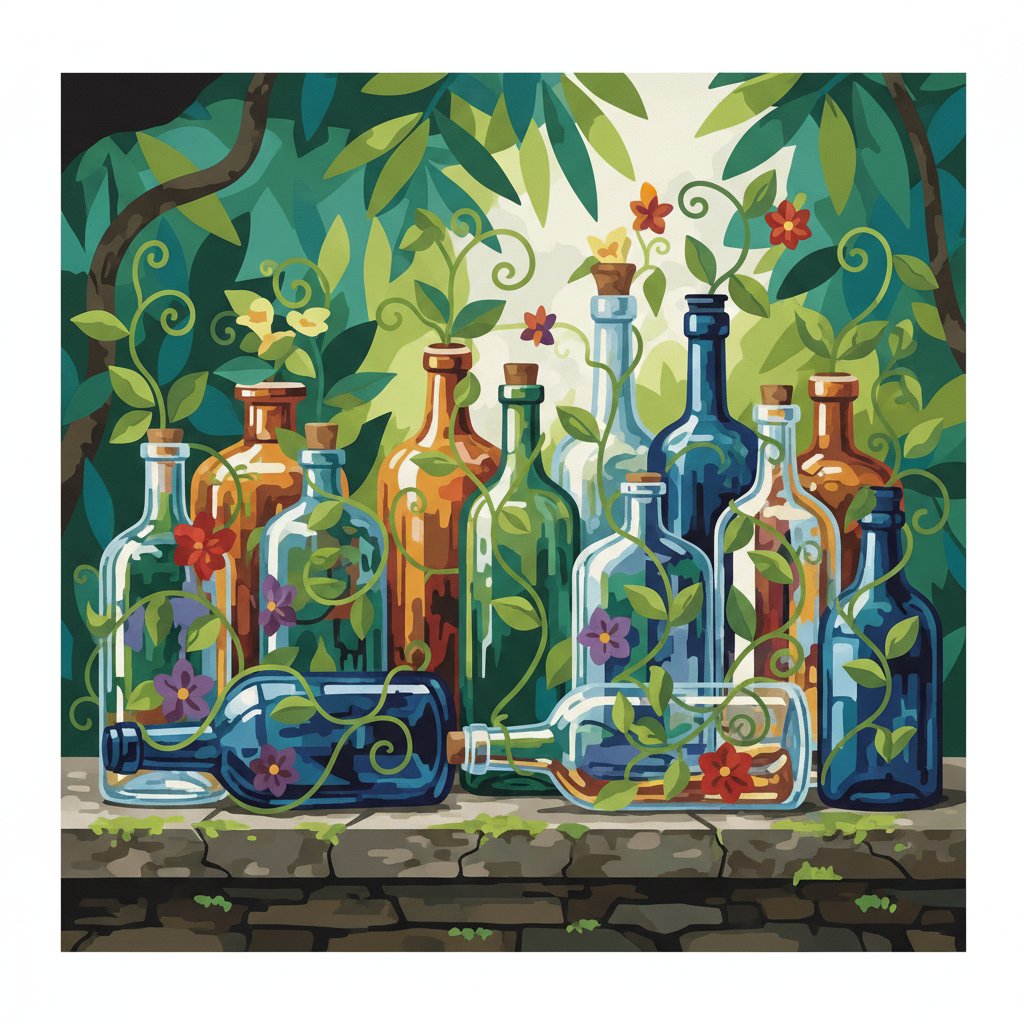 Transform your space with the enchanting Vines Reclaiming Vintage Bottles Paint By Numbers, capturing nature’s gentle reclaim of forgotten treasures. This atmospheric artwork combines dusty glassware with delicate botanical elements. Experience the meditative joy of creating realistic vintage scenes.
