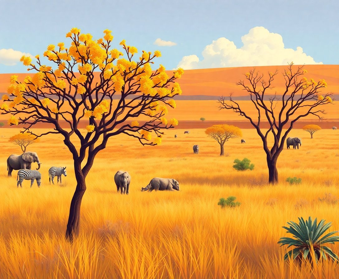 This therapeutic painting process reduces stress while enhancing focus and creativity. Moreover, the vintage amber tones promote relaxation and mindfulness. The sweeping savannah scenery also provides a meditative escape from daily routines.