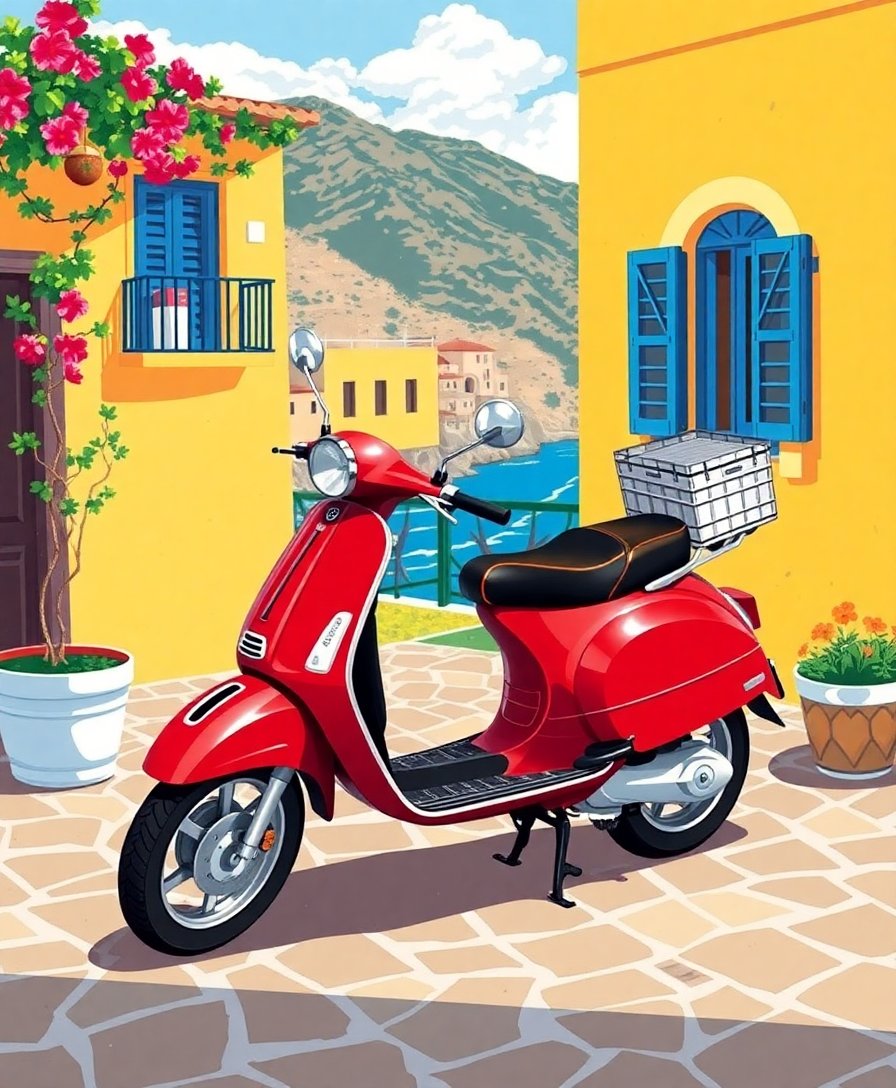 Vintage Aegean Taverna Scooter Paint By Numbers