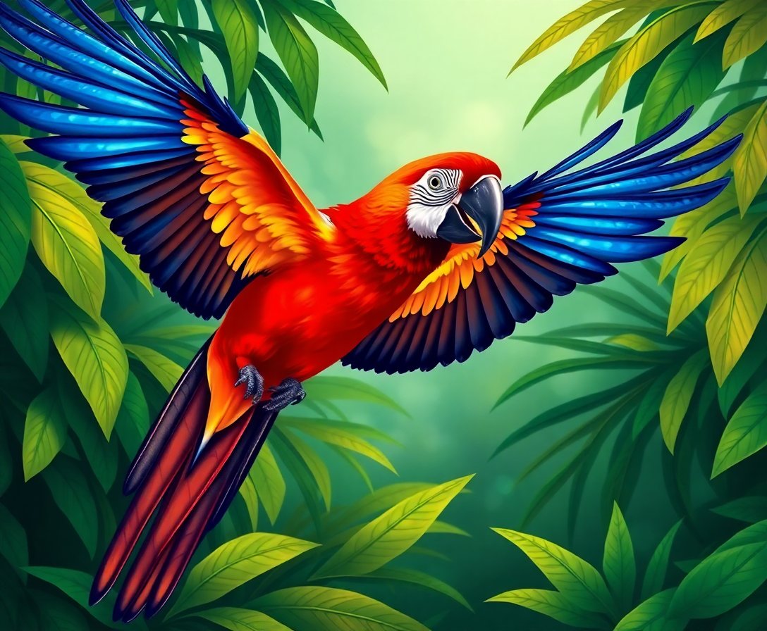 The rich palette captures jungle mist, vibrant plumage, and soft canopy light. Brush sizes help you glide from fine feathers to atmospheric background. Additionally, you can explore expert color theory tips to refine blending and shading.