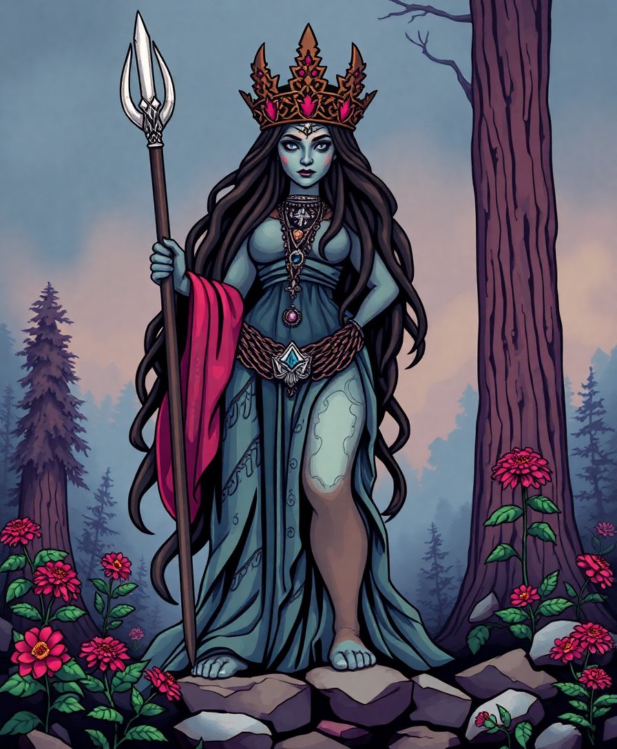 The vintage aesthetic combined with mystical folklore elements creates a unique artistic experience. The emerald green overgrown details add depth and natural beauty to this enchanting golem scene.