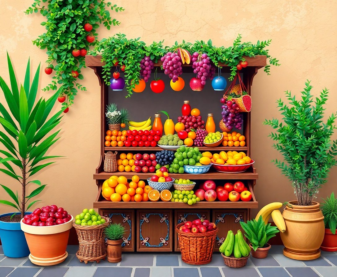 Ultimately, step back and admire your completed Andalusian scene. The nostalgic fruit stand comes alive through your careful attention. Display your finished masterpiece with pride and satisfaction.