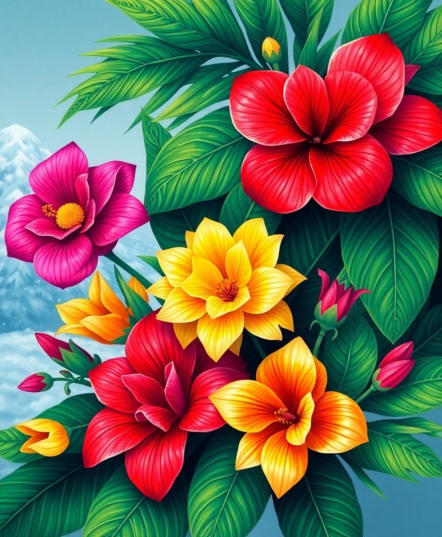 Vintage Andean Tropical Blooms Paint By Numbers