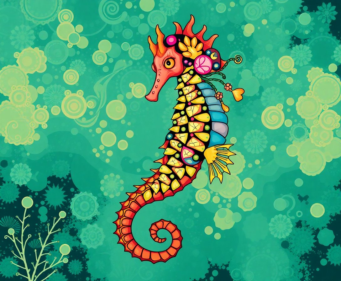 Ultimately, step back and admire your completed underwater masterpiece. Furthermore, the vintage sepia tones create an atmosphere of ancient mystery. Your seahorse now guards the secrets of lost Atlantis.