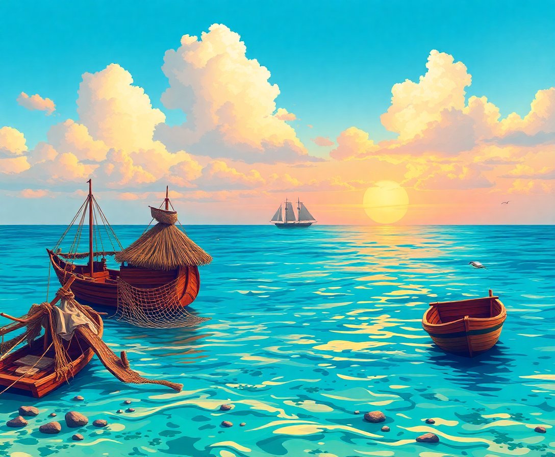 Transform your artistic vision with this captivating Vintage Atoll Net Caster Paint By Numbers design. This stunning sepia-toned masterpiece captures a fisherman casting his net against the backdrop of pristine Pacific islands. Each brushstroke brings you closer to creating an authentic piece of oceanic artistry.