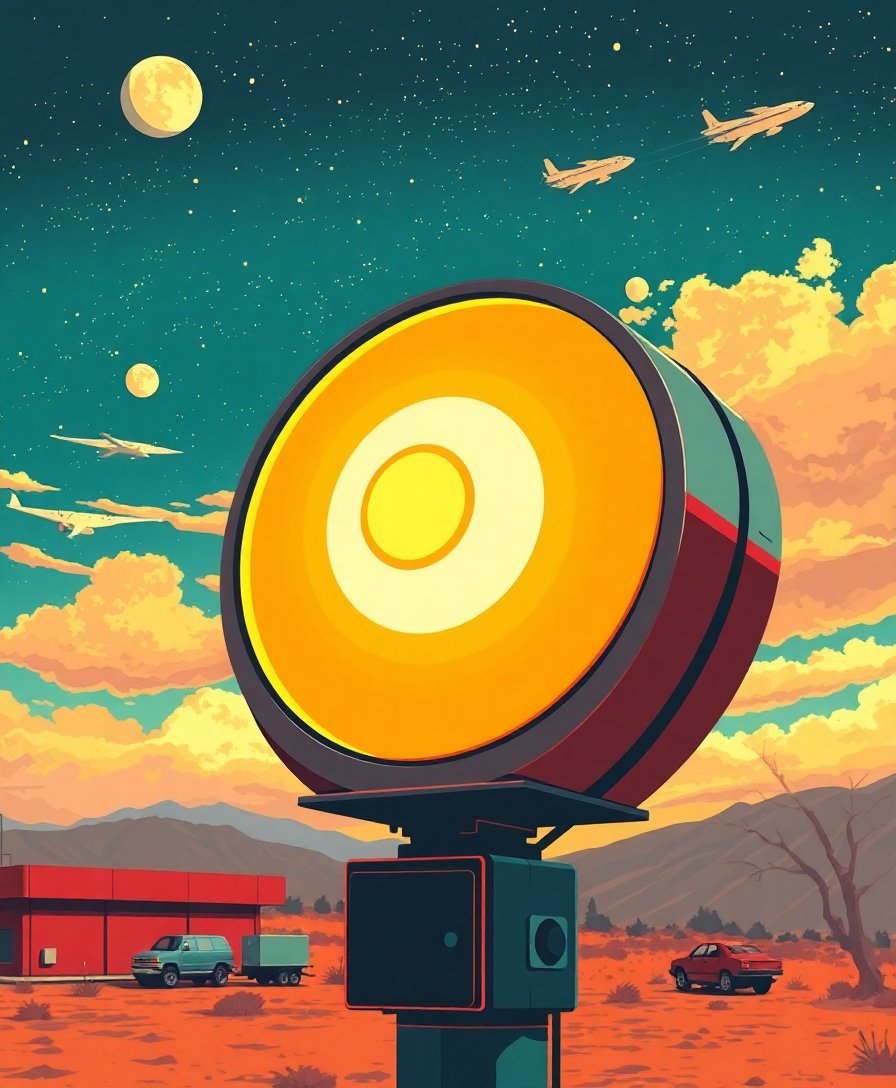 This unique vintage sci-fi theme combines atomic age aesthetics with artistic expression, creating a distinctive piece that celebrates mid-century futuristic optimism and design innovation.