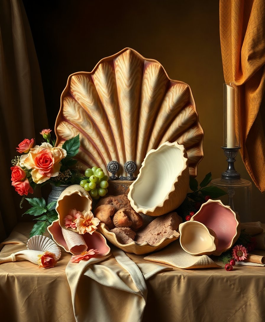 Vanitas paintings traditionally symbolize life’s fleeting nature through objects like shells and flowers. This meaningful art style adds depth and contemplative beauty to your home.