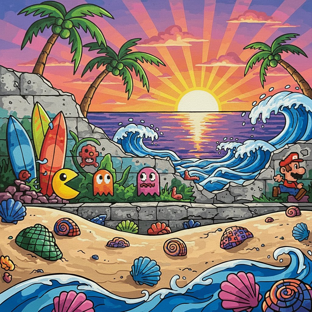 This Vintage Beach Gaming Graffiti Paint By Numbers offers remarkable stress relief through focused artistic expression. Additionally, the meditative painting process promotes mindfulness while celebrating beloved gaming memories. Each brushstroke connects you with creative flow and nostalgic joy.
