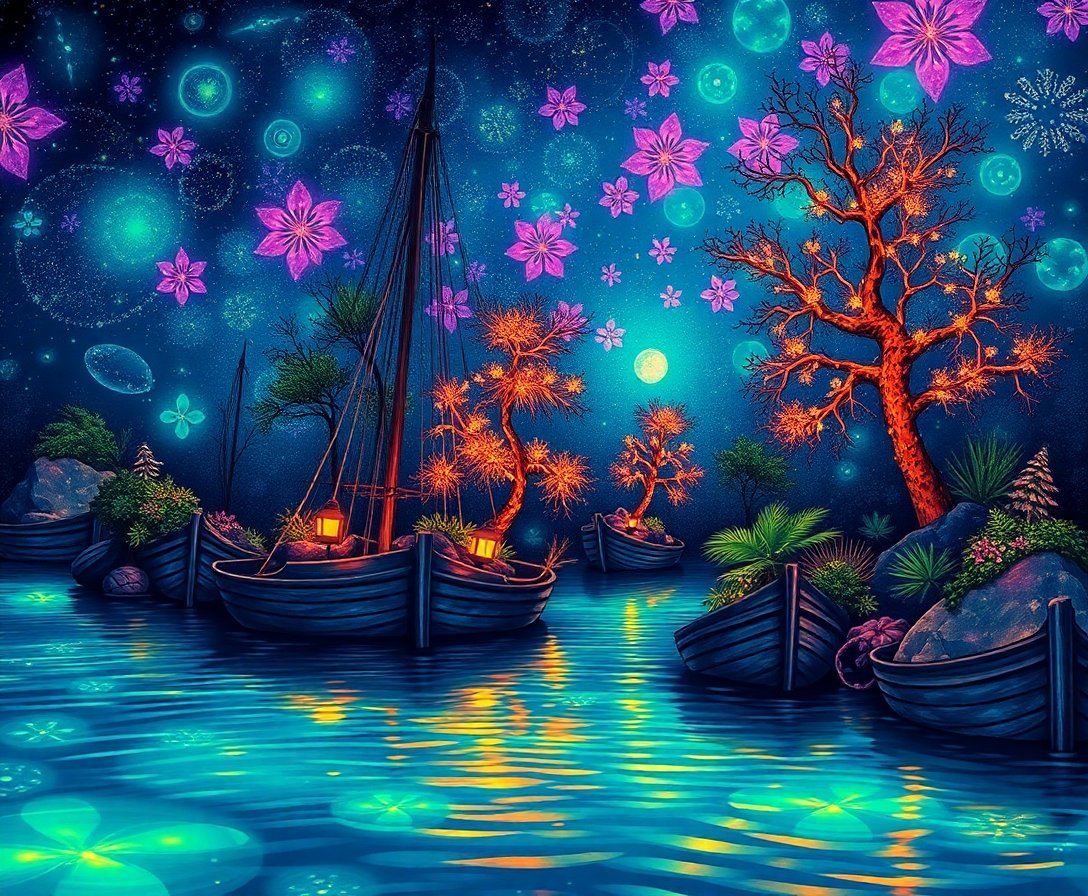 Transform your artistic vision into reality with this mesmerizing Vintage Bioluminescent Lagoon Paint By Numbers kit. This enchanting design captures the magical essence of a midnight lagoon adorned with glowing neon-blue elements. Perfect for artists seeking a unique nautical masterpiece.