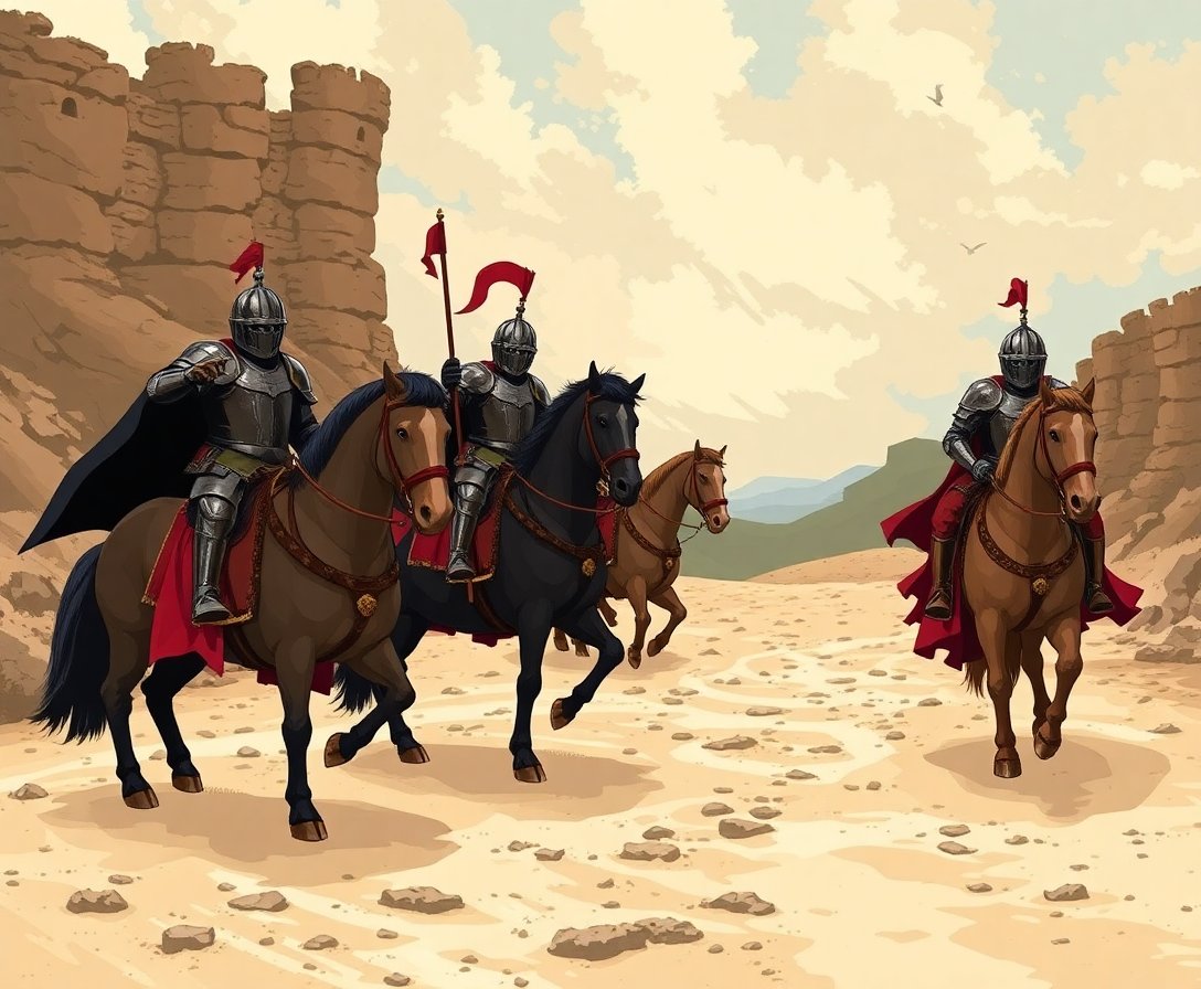 Ultimately, apply final details to complete your vintage masterpiece showcasing armored knights in dramatic coastal battle. Therefore, each completed section brings the legendary duel to vivid life.