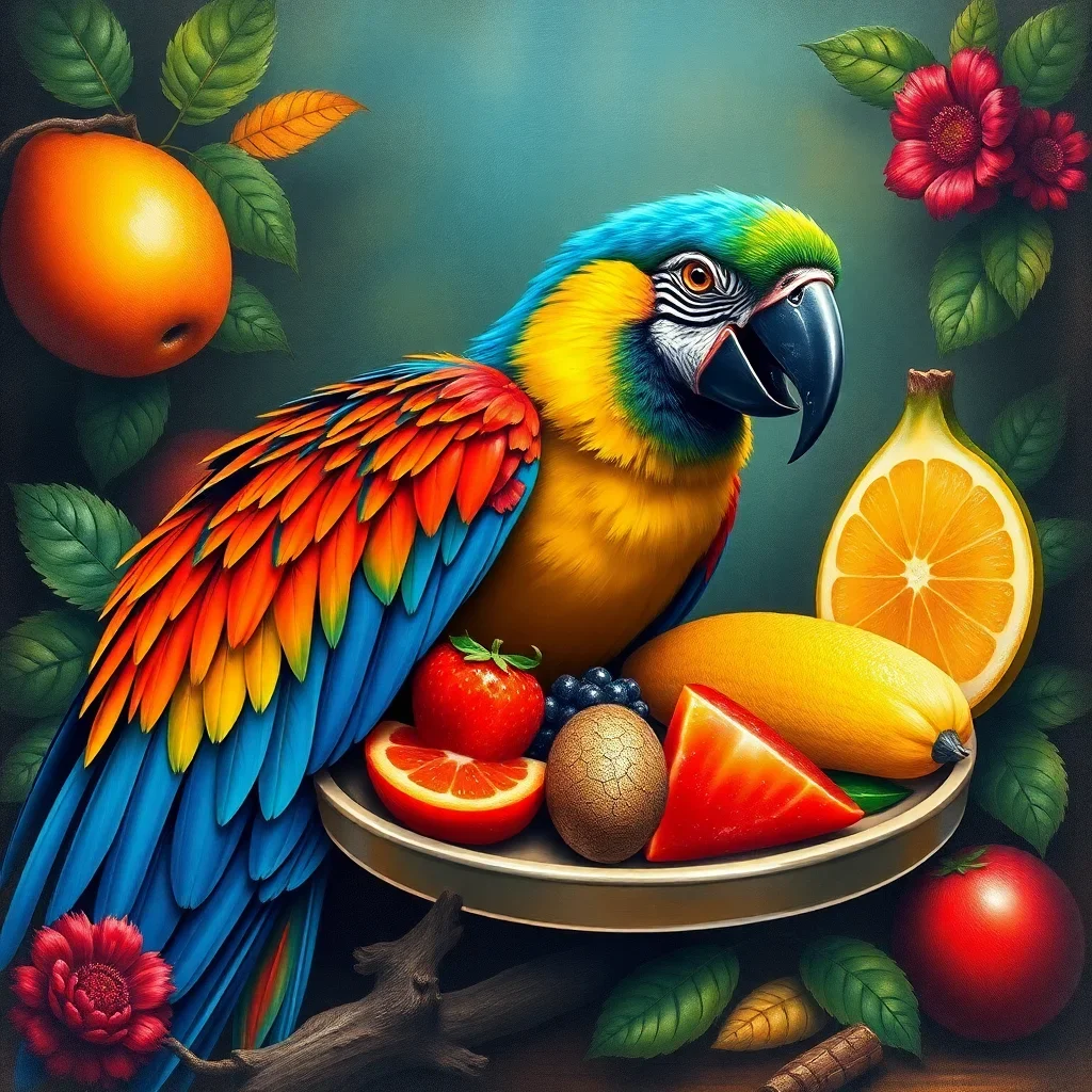 Complete Vintage Blue Macaw Feast Paint by Numbers Kit