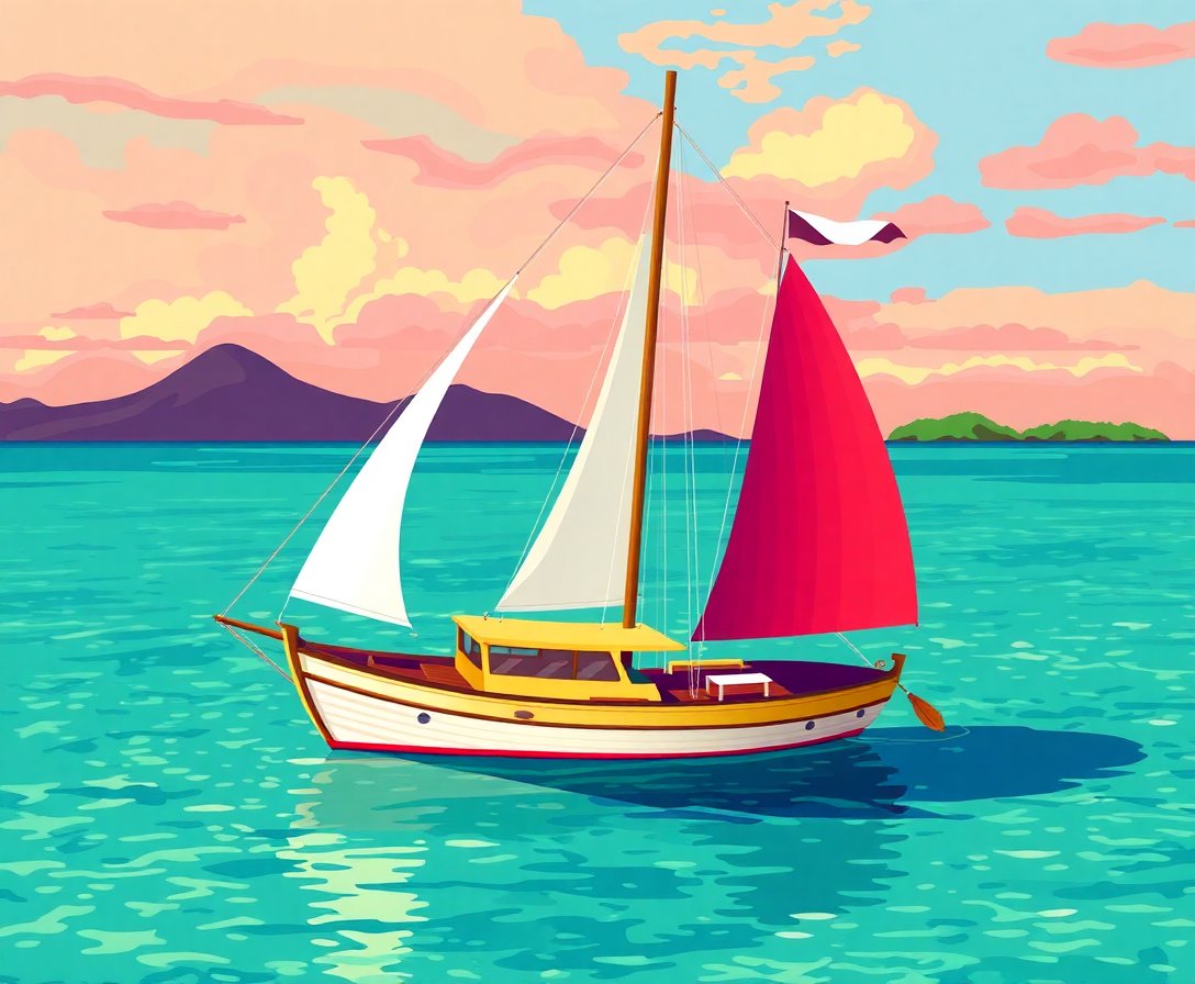Ultimately, add final details to your schooner and tropical lagoon scene. Allow each section to dry completely before moving forward. Consequently, you’ll have a stunning vintage sailboat masterpiece ready for display.