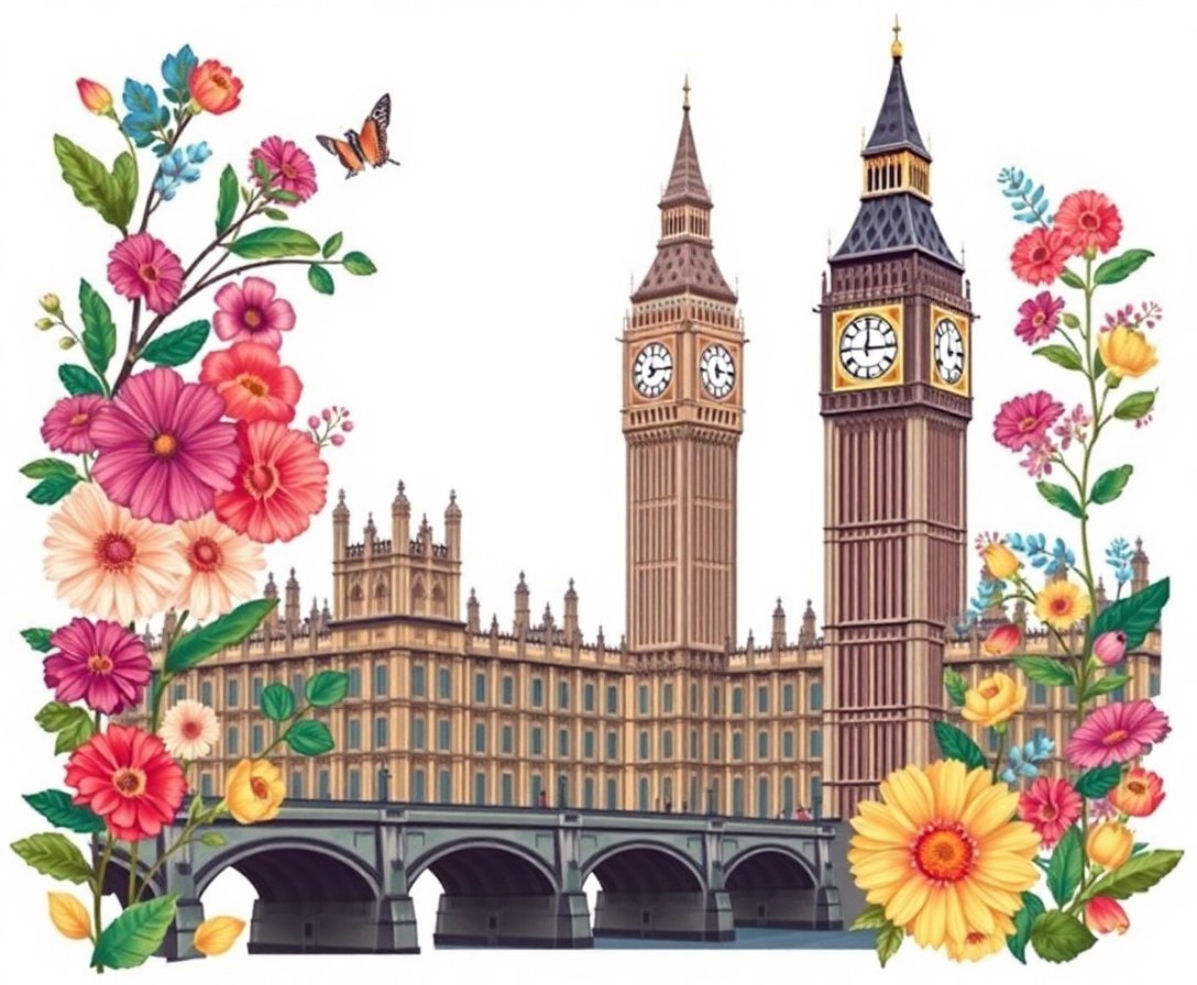 The high-quality linen canvas measures 16×20 inches, providing ample space for detailed botanical elements and Big Ben’s intricate architecture while fitting perfectly in most home spaces.