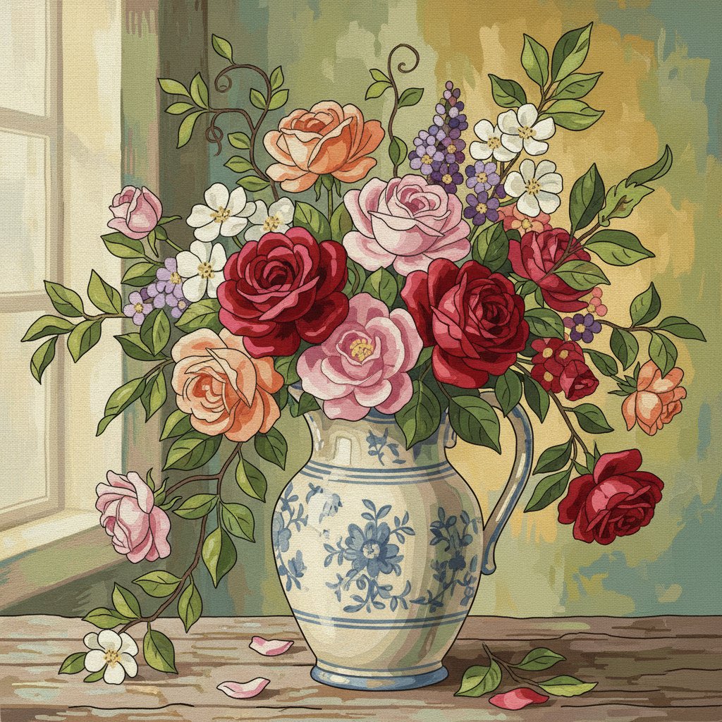 Transform your creative space with this enchanting Vintage Botanical Pitcher Bloom Paint By Numbers masterpiece. This elegant design captures the timeless beauty of vintage botanical illustration. Each brushstroke brings delicate spring blossoms to life in warm sepia tones.