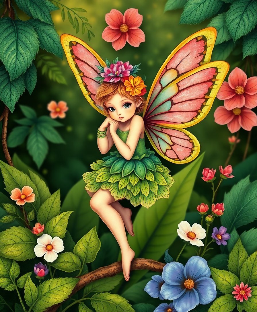 The intricate tropical flora and gossamer pixie details create a unique vintage aesthetic. Moreover, the combination of mythical elements with botanical accuracy offers both artistic challenge and visual appeal.