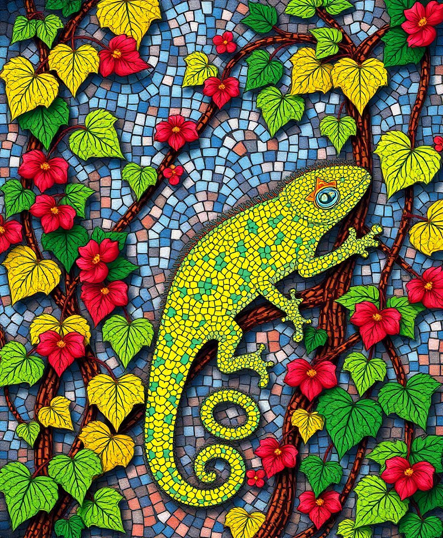 Embark on this artistic journey and discover the joy of creating Byzantine-inspired beauty. Additionally, this cultural historical masterpiece makes an exceptional gift for art enthusiasts. Therefore, begin your creative adventure today with this captivating chameleon and vine composition.