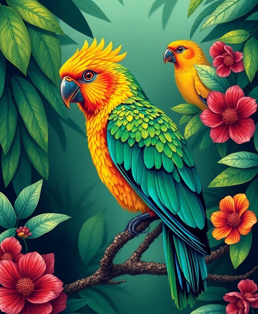Subsequently, begin with larger canopy areas in soft greens. After that, build up jewel tones on the bird’s feathers. As you progress, your tropical scene gains depth and luminous contrast. Every completed section adds confidence and joy to your creative masterpiece.