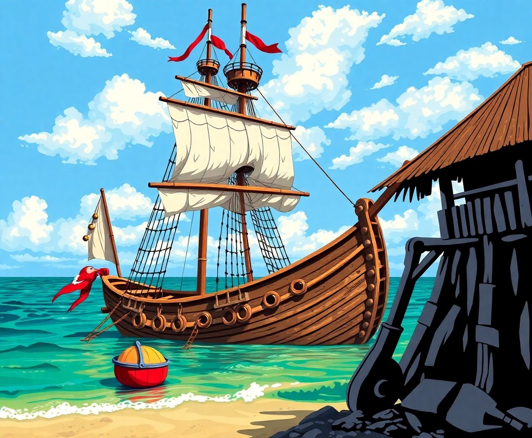 Embark on this creative voyage today and bring the romance of the Caribbean seas into your home. This Vintage Caribbean Galleon Anchoring Paint By Numbers transforms any space into a window to maritime history.