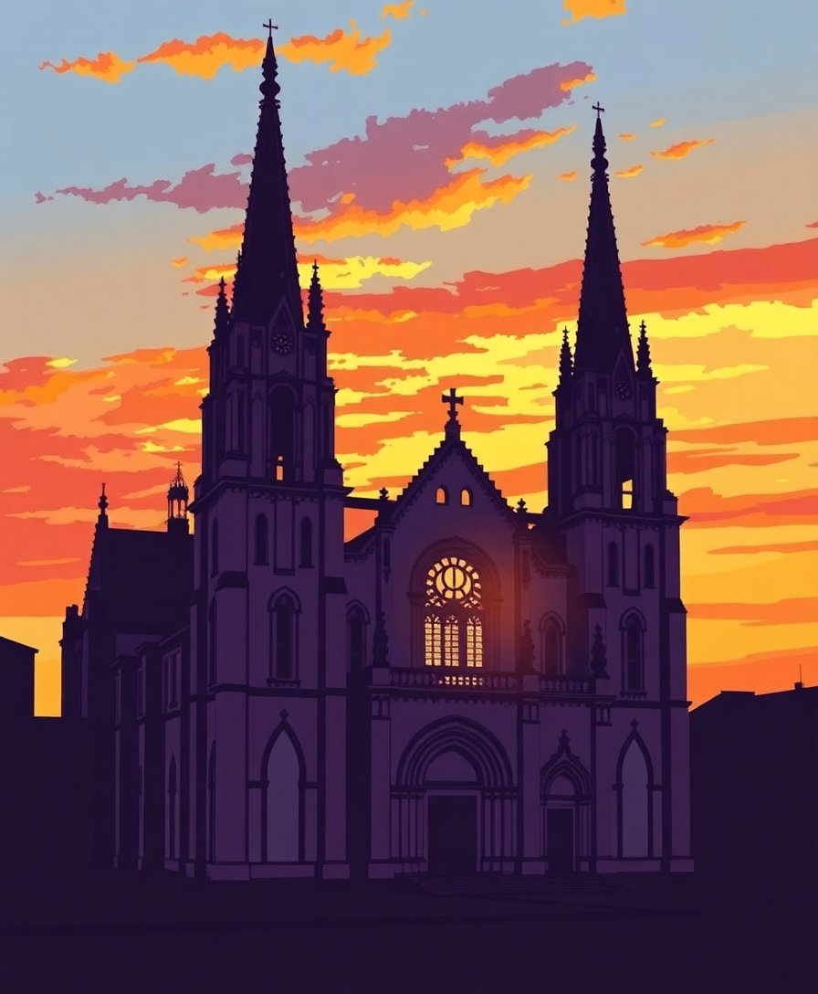 Transform your creative space with this stunning Vintage Cathedral Sunset Silhouette Paint By Numbers masterpiece. This captivating design captures the timeless beauty of Gothic architecture silhouetted against a warm, glowing sunset. Moreover, each brushstroke brings you closer to creating your own architectural wonder.