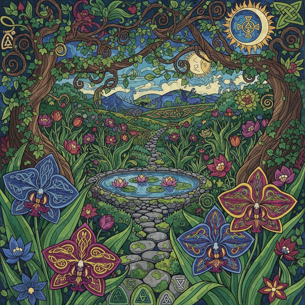 Transform your space with this enchanting Vintage Celtic Orchid Garden Paint By Numbers design. This captivating botanical masterpiece blends timeless Celtic artistry with delicate orchid blooms. Furthermore, emerald shamrocks dance throughout the composition, creating a harmonious celebration of Irish heritage.