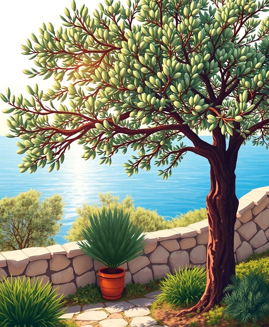 Ultimately, add final details to bring your coastal scene to life. Additionally, step back frequently to appreciate your progress. Your completed olive tree masterpiece will radiate Mediterranean warmth.