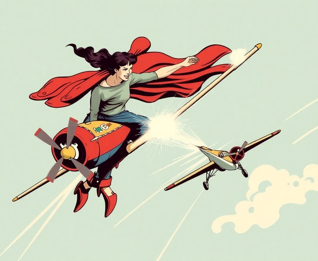 Additionally, this retro aviation theme captures the excitement of classic comic book adventures. Perfect for enthusiasts of vintage aircraft and dynamic skies. Create your own tribute to the golden age of aviation storytelling.