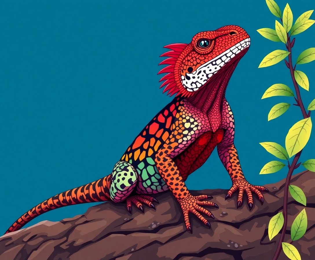 Ultimately, complete the fine details that bring your vintage reptile illustration to life. Additionally, step back and admire your finished masterpiece. Your crimson agama now radiates with authentic vintage charm.