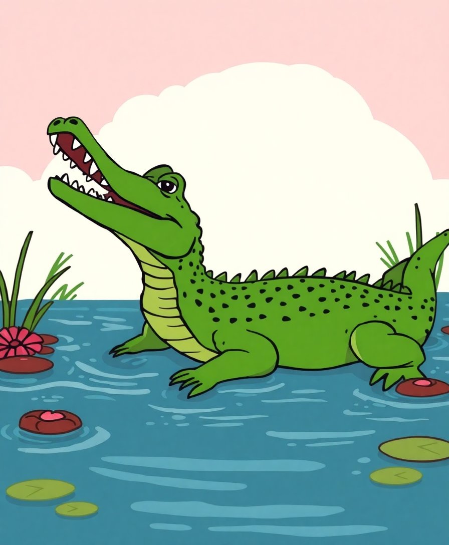 Ultimately, step back and admire your finished creation. The nostalgic crocodile scene now radiates classic animation charm. Consequently, you’ve created a timeless piece worthy of display.