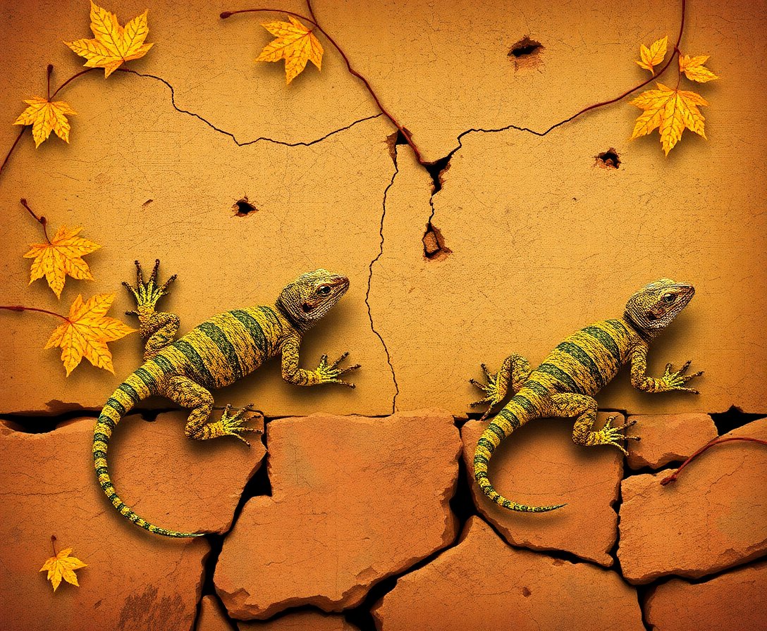 Transform your space with this captivating Vintage Crumbling Stucco Lizards Paint By Numbers kit. This unique artistic journey combines rustic charm with wildlife beauty. Create a stunning masterpiece that captures weathered textures and ancient architectural details.