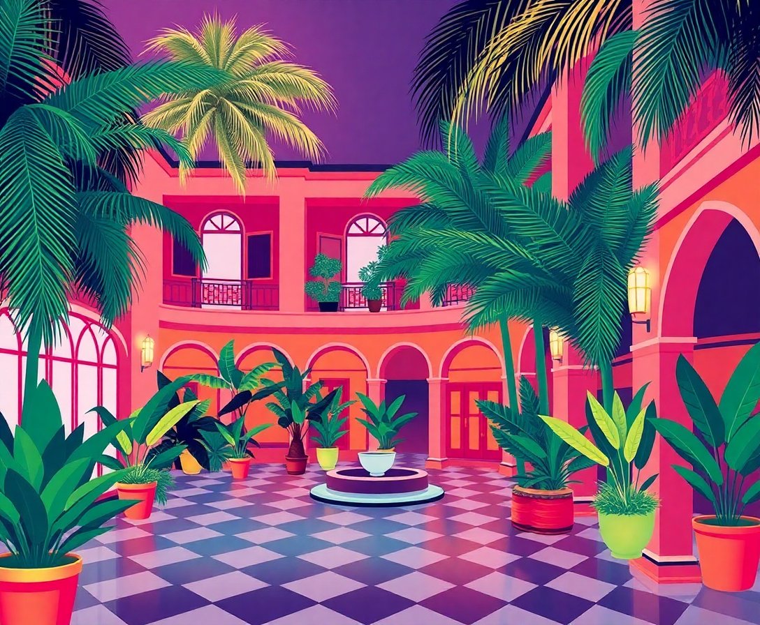 Ultimately, step back and admire your completed Vintage Deco Palm Court Paint By Numbers creation. Additionally, the pastel tones and architectural elements create a sophisticated focal point. Your finished artwork showcases the timeless elegance of vintage design aesthetics.