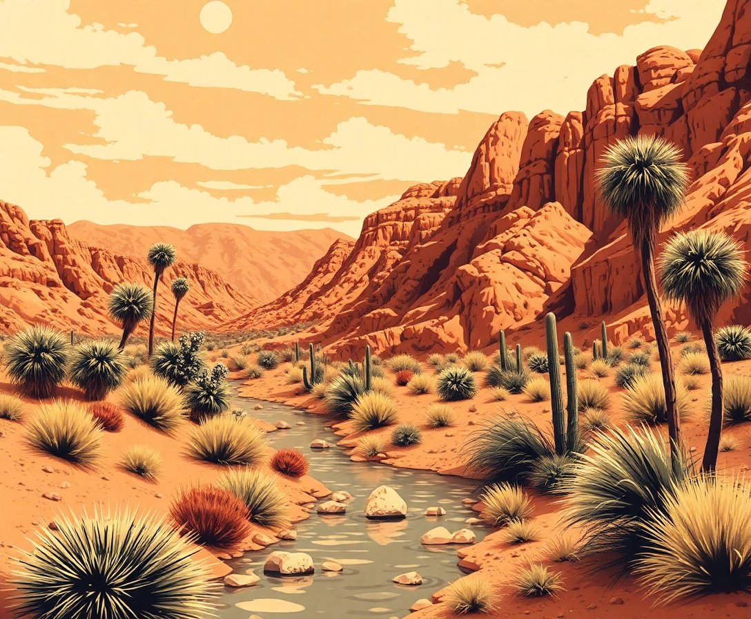 Embrace the artistic journey and discover the satisfaction of completing your own Vintage Desert Creek Oasis Paint By Numbers masterpiece today.