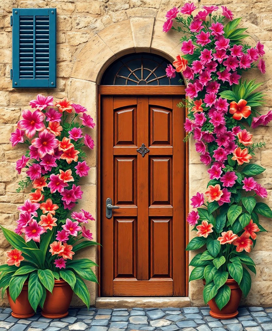 Vintage Door Tropical Blooms Paint By Numbers