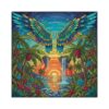 The high-quality linen canvas measures 16×20 inches, providing ample space for detailed jungle and cenote elements. This size displays beautifully in most rooms.