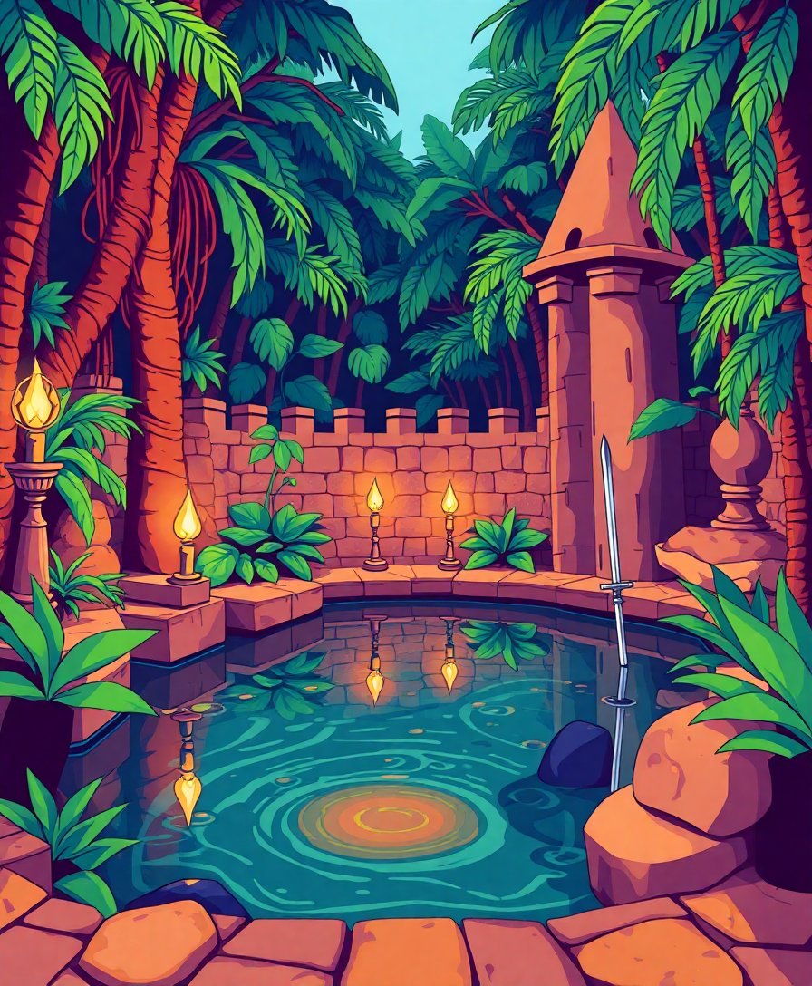 Step into the mystical world of Arthurian legend with this enchanting Vintage Excalibur Jungle Pool Paint By Numbers kit. This captivating design transports you to an ancient cenote where the legendary sword awaits discovery. Sapphire waters shimmer through dense jungle foliage, creating a mesmerizing scene that blends myth with natural beauty.