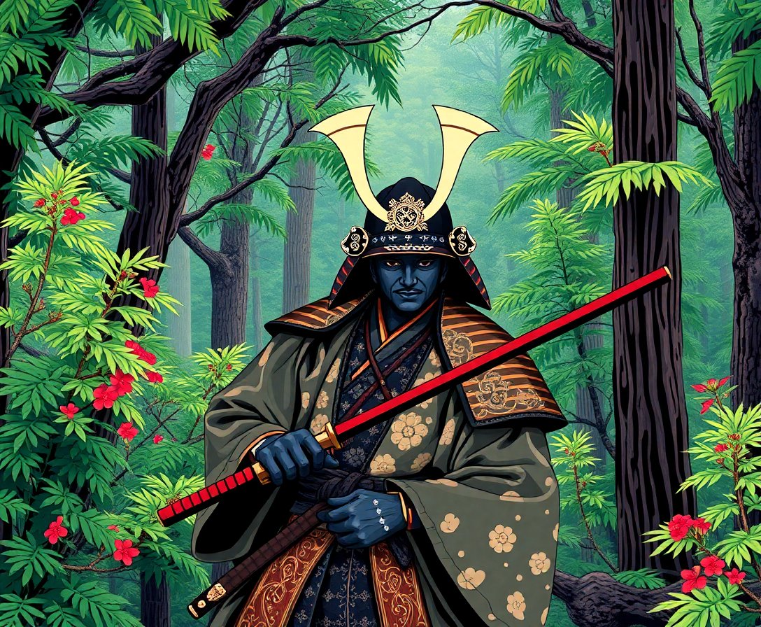 Ultimately, add final details to the atmospheric ferns and warrior’s expression. These finishing touches bring your vintage scene to life. Your completed artwork becomes a stunning tribute to Japan’s rich cultural heritage.