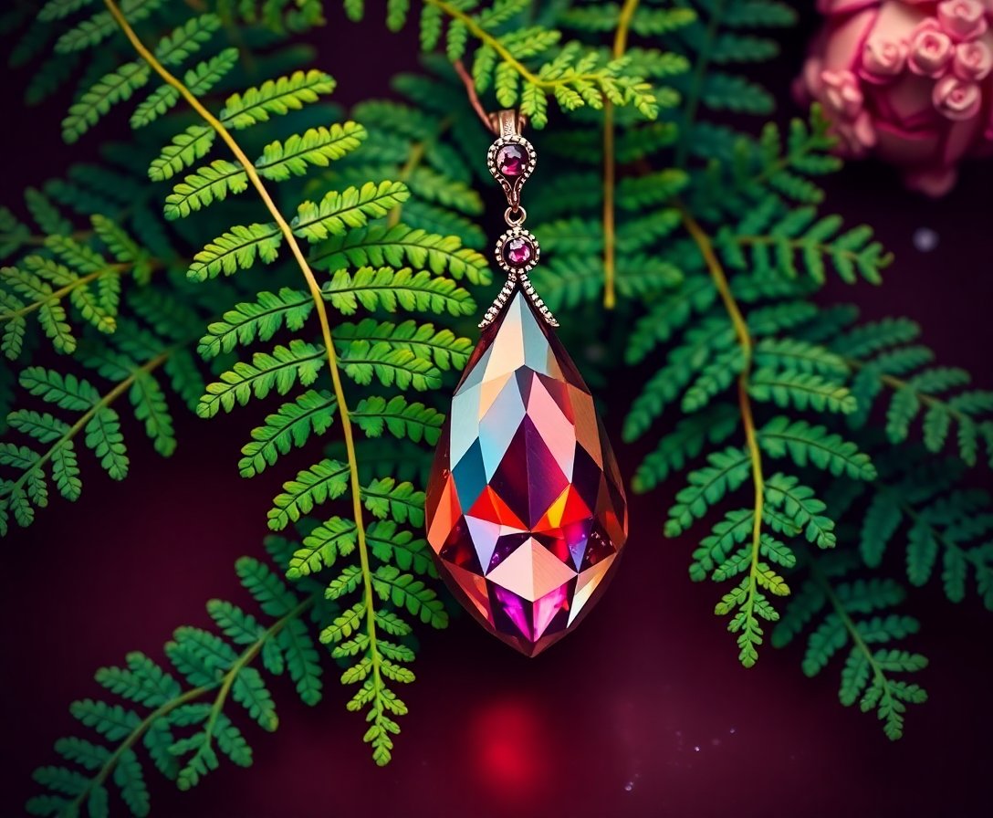The intricate details combine realistic fern textures with sparkling gemstone accents, creating a sophisticated piece perfect for vintage decor enthusiasts.