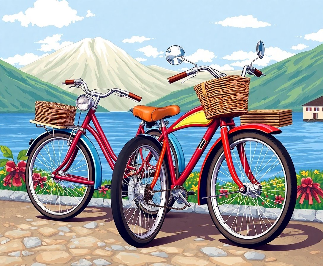 Transform your creative space with the enchanting Vintage Fjord Bakery Bikes Paint By Numbers. This nostalgic design captures the timeless charm of Scandinavian village life. Bicycles rest peacefully beside a quaint bakery overlooking serene fjord waters.