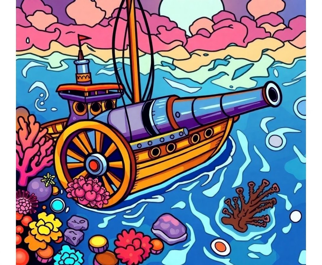Transform your creative space with this stunning Vintage Galleon Cannon Reef Paint By Numbers kit. This captivating design features a magnificent galleon with weathered cannons resting peacefully on a vibrant coral reef. Moreover, this artwork brings together the mystery of maritime history with the beauty of underwater landscapes.
