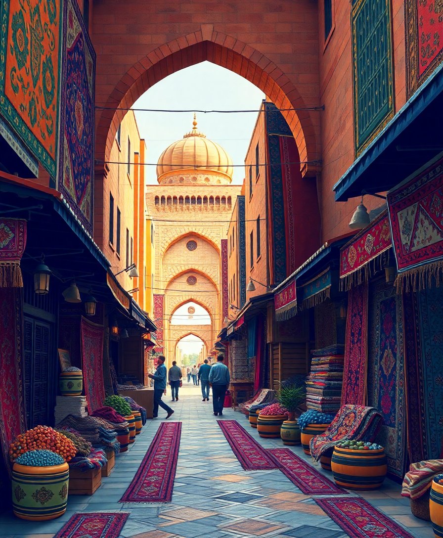 Ultimately, step back and admire your completed creation as it captures the essence of ancient markets. The sepia tones and architectural details create a stunning focal point. Your finished piece celebrates the beauty of textile artistry through paint.