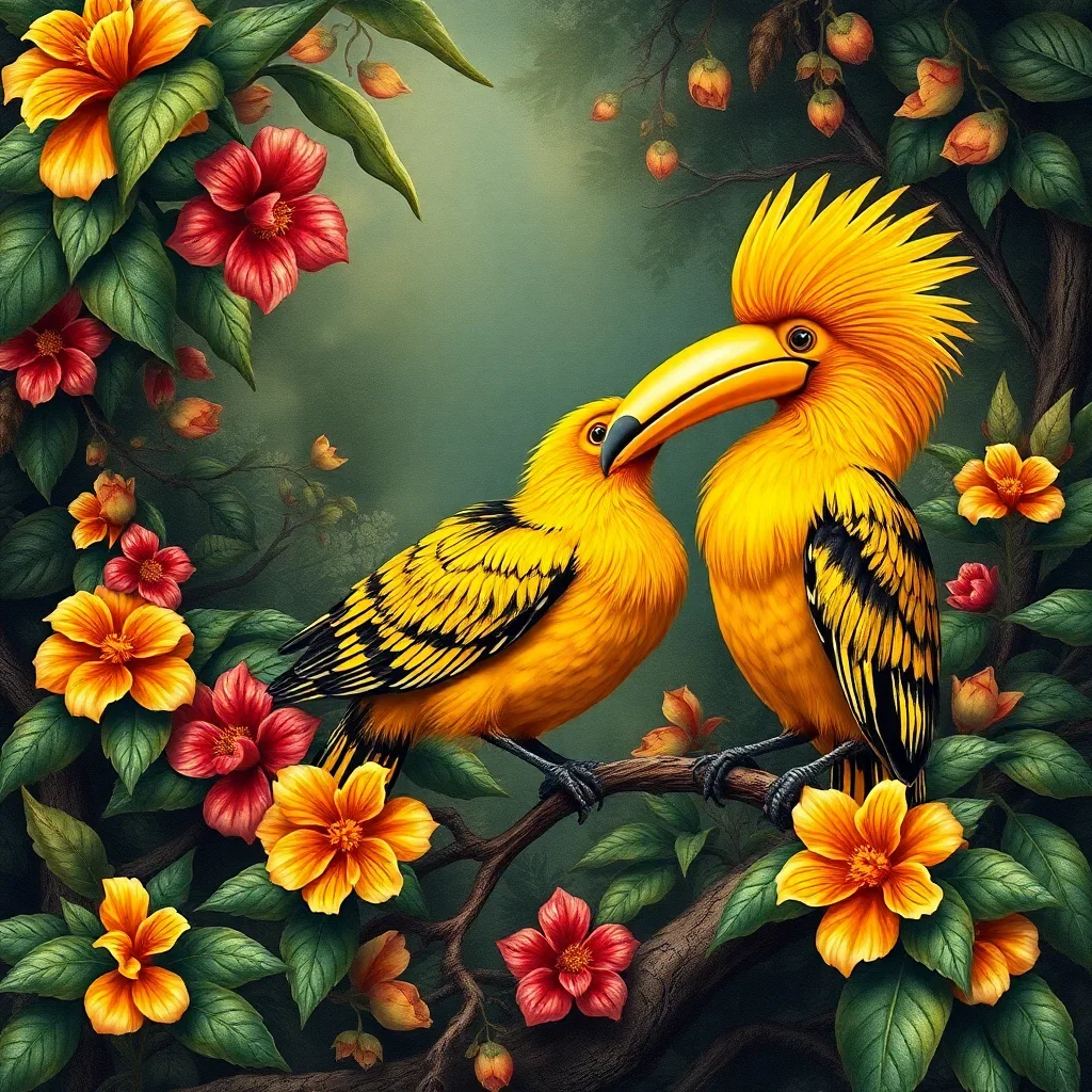 Transform your space with the majestic beauty of tropical birds through this Vintage Golden Hornbills Paint By Numbers masterpiece. This stunning design captures the elegance and vibrant plumage of these magnificent creatures in rich, golden tones.