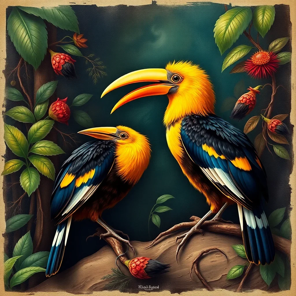 Complete Vintage Golden Hornbills Paint By Numbers Kit