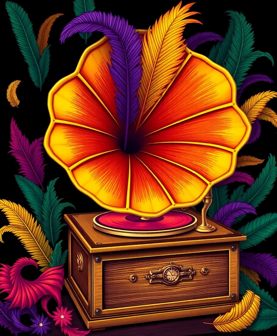 Transform your creative space with this captivating Vintage Gramophone Exotic Feathers Paint By Numbers masterpiece. This elegant design combines the nostalgic charm of antique brass gramophones with the vibrant allure of exotic feathered decorations. Each numbered section guides you through creating a sophisticated artwork that celebrates both musical heritage and ornate beauty.
