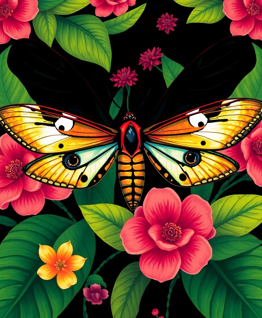 Ultimately, step back and admire your completed vintage masterpiece. The macabre beauty of the hawkmoth paired with botanical elements creates striking wall art. Consequently, your finished piece becomes a conversation starter for any room.