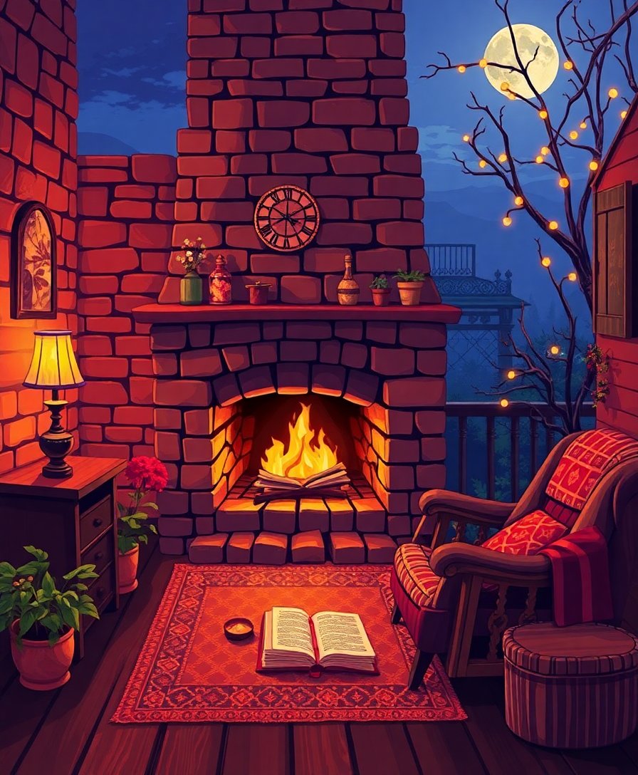 Subsequently, begin with lighter amber tones around the hearth. Moreover, work systematically from one section to another. Additionally, watch as the vintage fireplace gradually comes to life with each careful stroke.